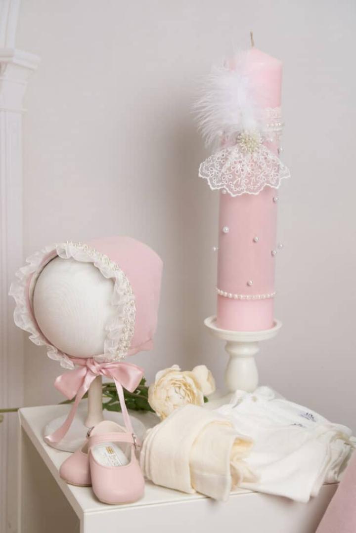 Lumanare botez A37 - Perle, Jabou si Pene - Roz
