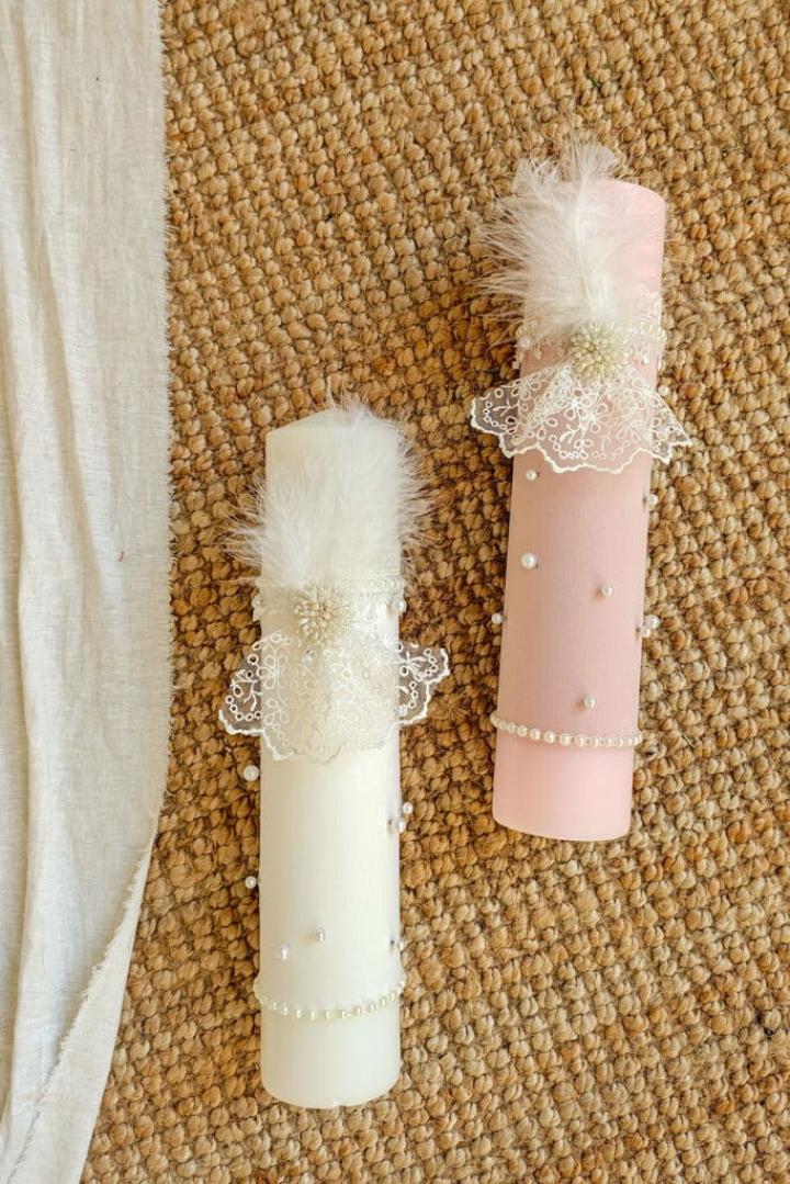 Lumanarea are un aer clasic, potrivita pentru un botez de poveste.