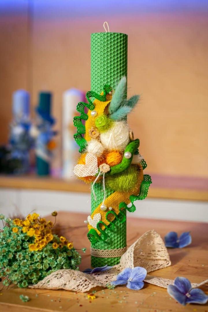 Lumanari vesele din ceara naturala, colorate, pastelate cu elemente jucause decorative.